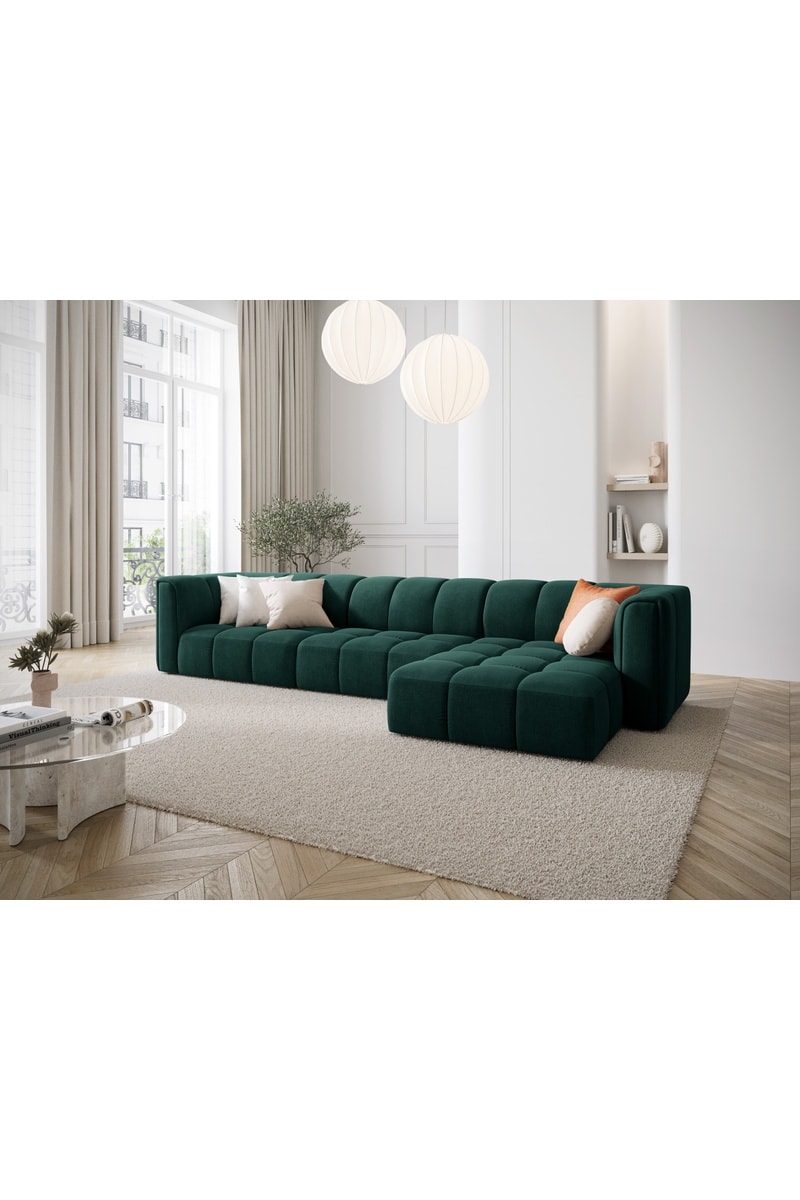 Canapé d'angle droit modulaire Adams - Vert bouteille - 5 places - En tissu chenille rebel et velours