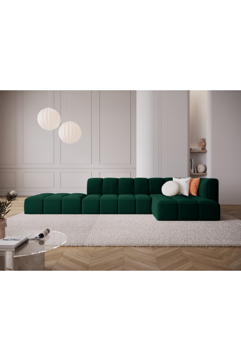 Canapé d'angle droit Adams - Vert bouteille - 5 places - En velours