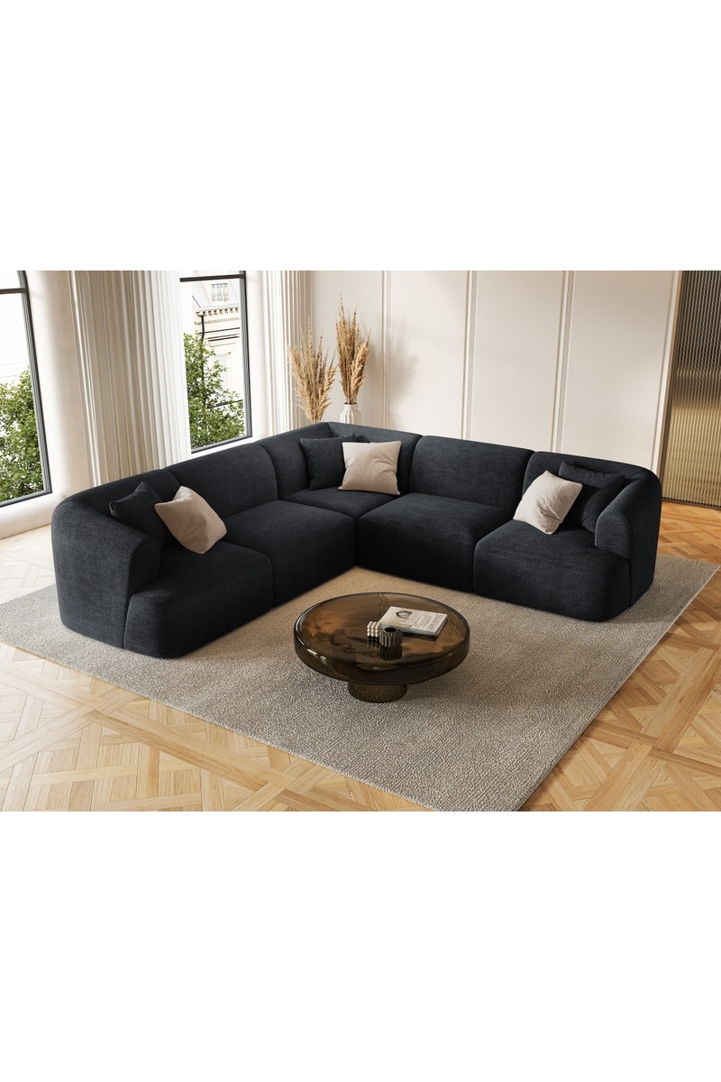 Canapé d'angle symétrique modulable Talia - Noir - 6 places - En tissu d'ameublement Lincoln