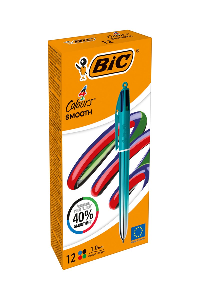12 stylos-bille 4 couleurs Smooth - 4 encres
