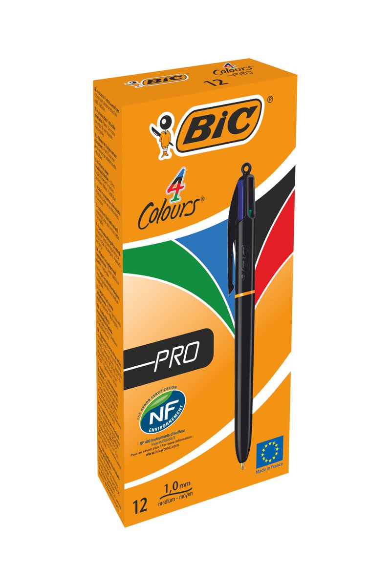 12 stylos-bille 4 couleurs Pro - 4 encres