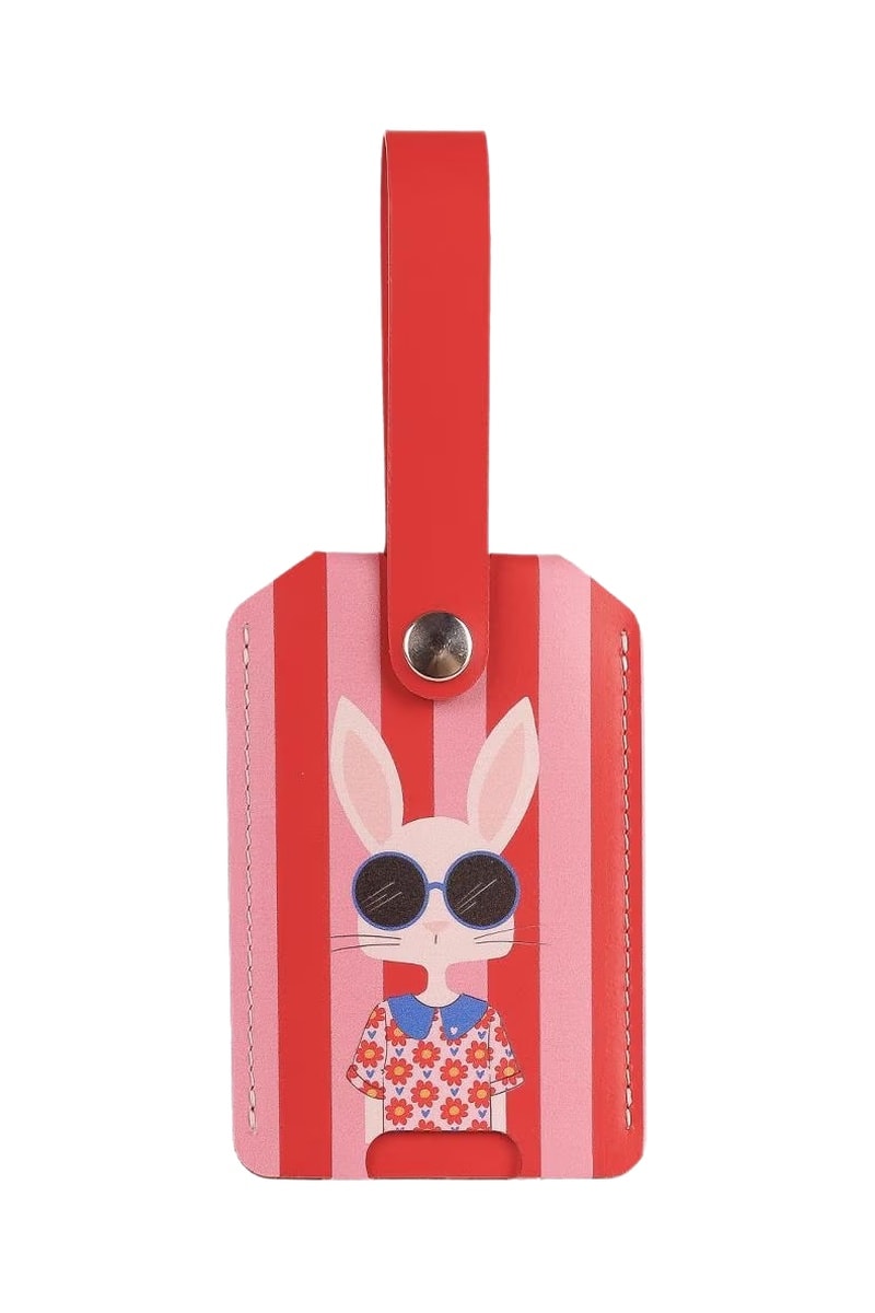 Porte-étiquette en cuir Hipster - Rouge et rose poudré