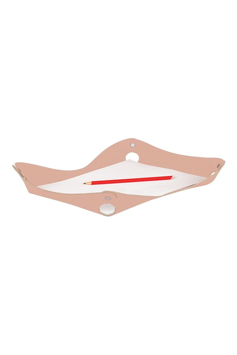 Plateau porte-papiers en cuir - Rose poudré