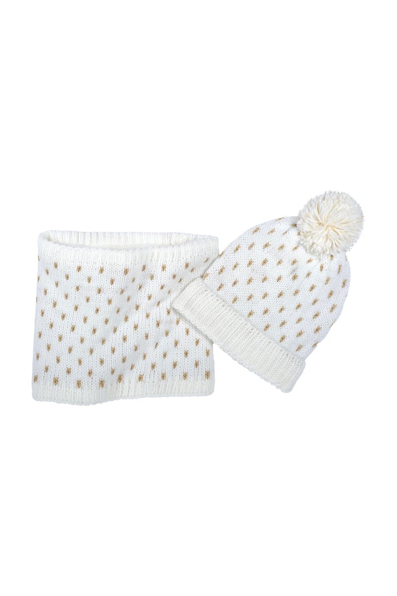 Bonnet à pompon et snood - Blanc