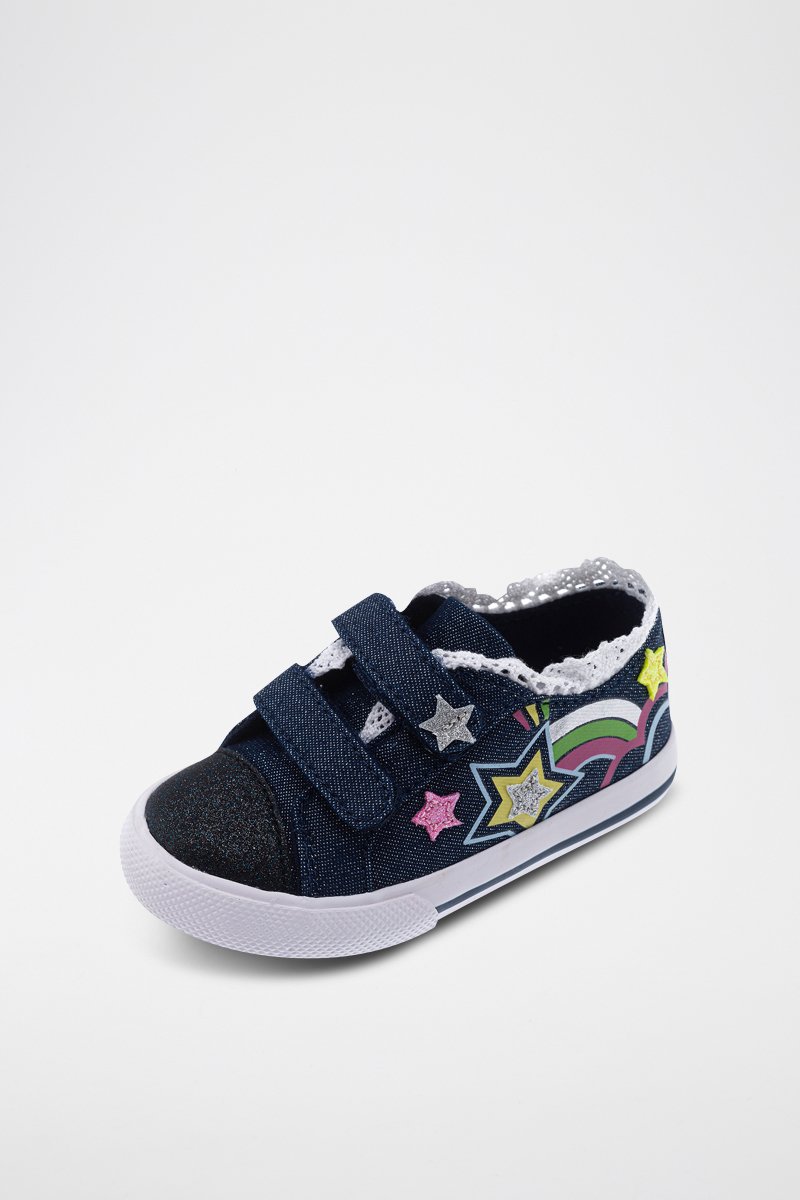 Motifs fantaisie et empiècement à motifs étoiles pailletés sur le côté.