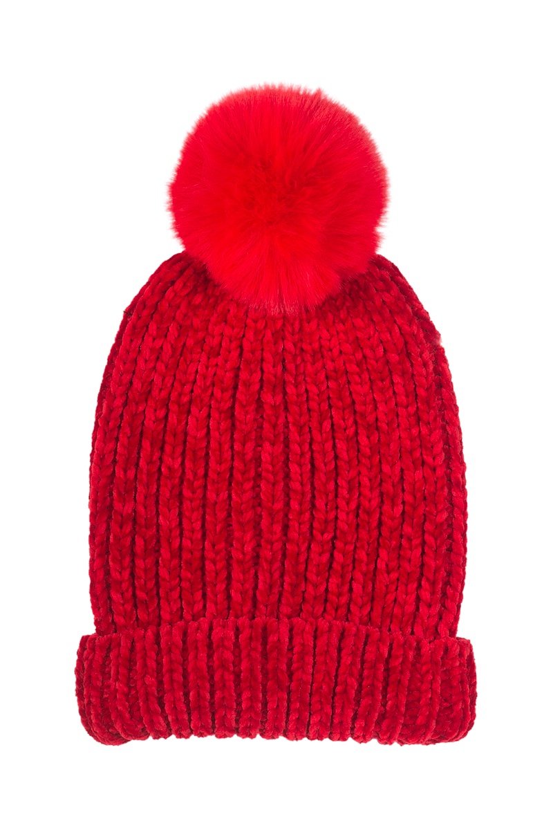 Bonnet à pompon - Rouge