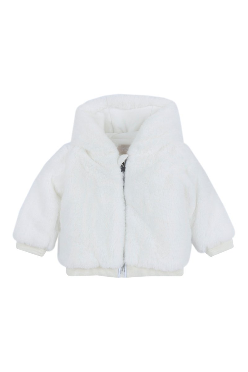 Gilet à capuche en fourrure synthétique.