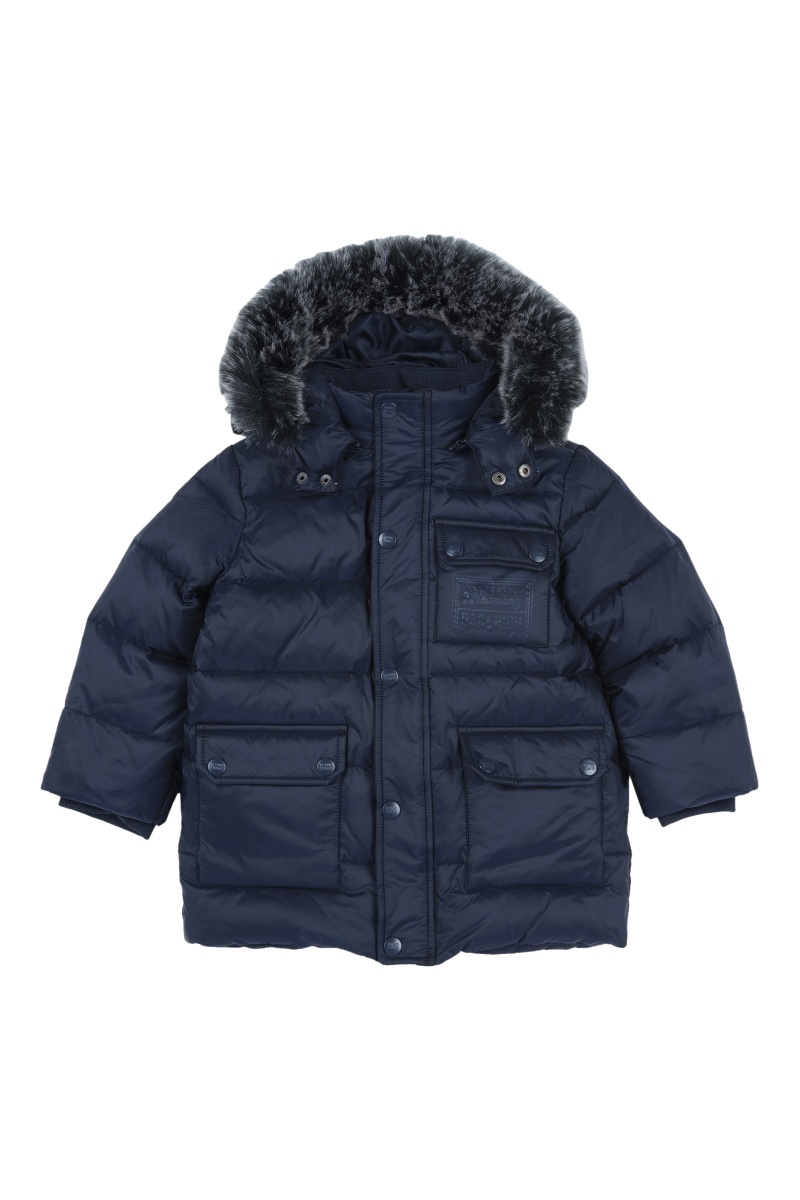 Doudoune à capuche amovible avec fourrure synthétique.