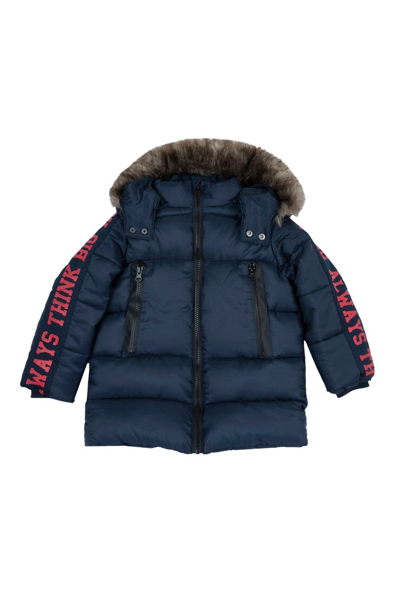 Doudoune à capuche amovible.