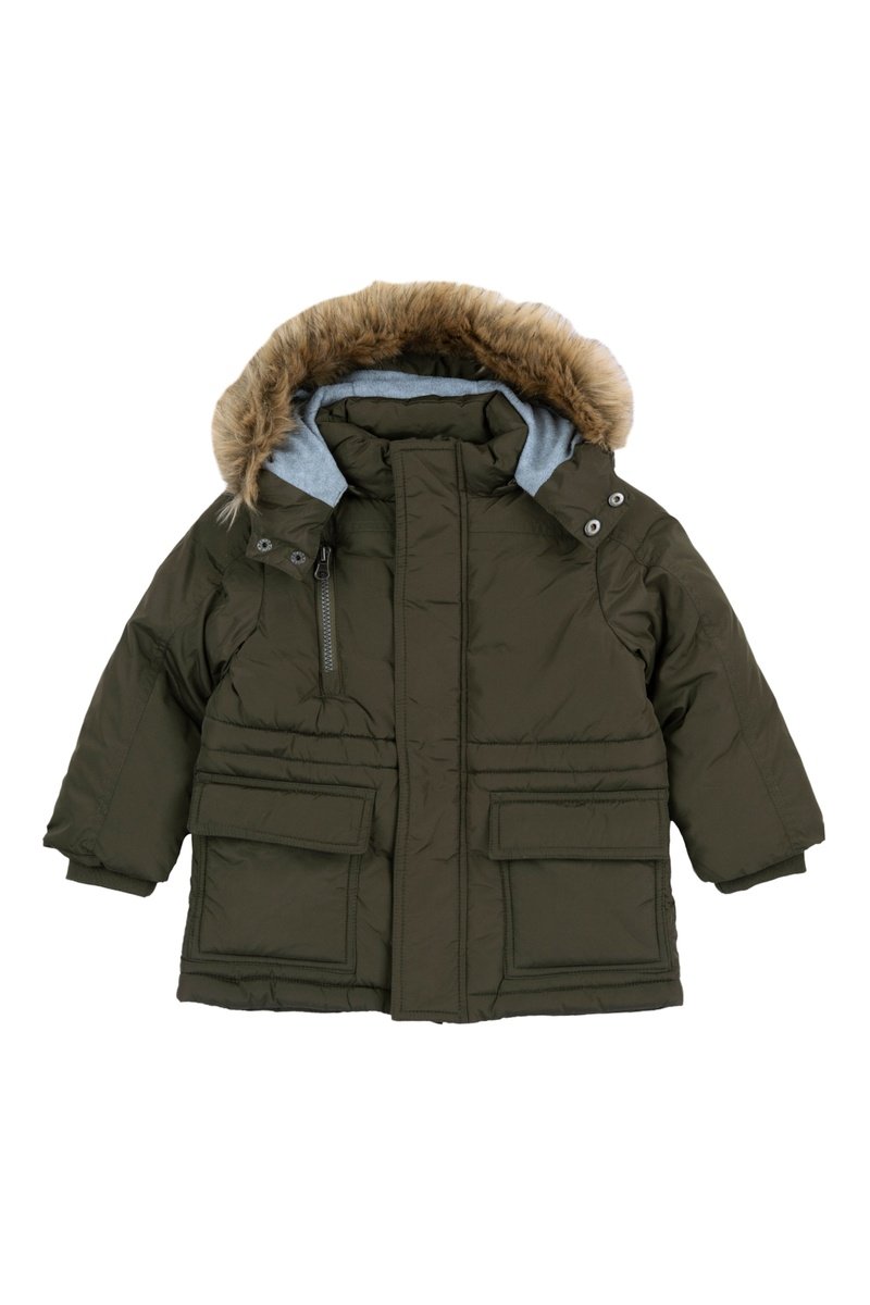 Capuche amovible avec fourrure synthétique.