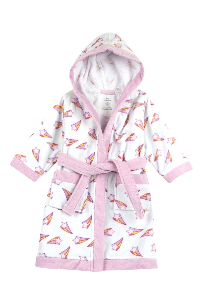 Peignoir à capuche - Blanc et rose