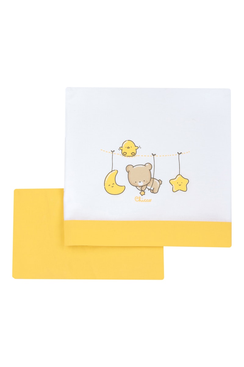 2 taies d’oreiller dont 1 à motifs fantaisie avec logo au recto.