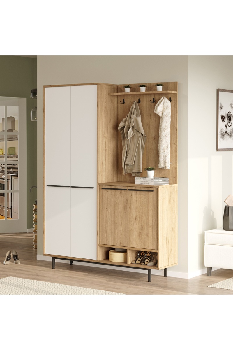 Meuble d’entrée 4 portes - Imitation chêne et blanc