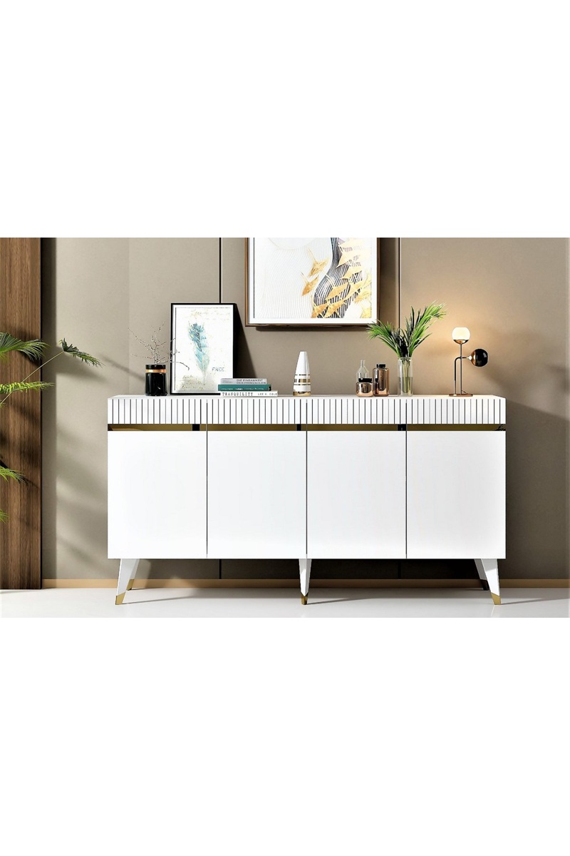 Bahut 4 portes Defne - Blanc et doré