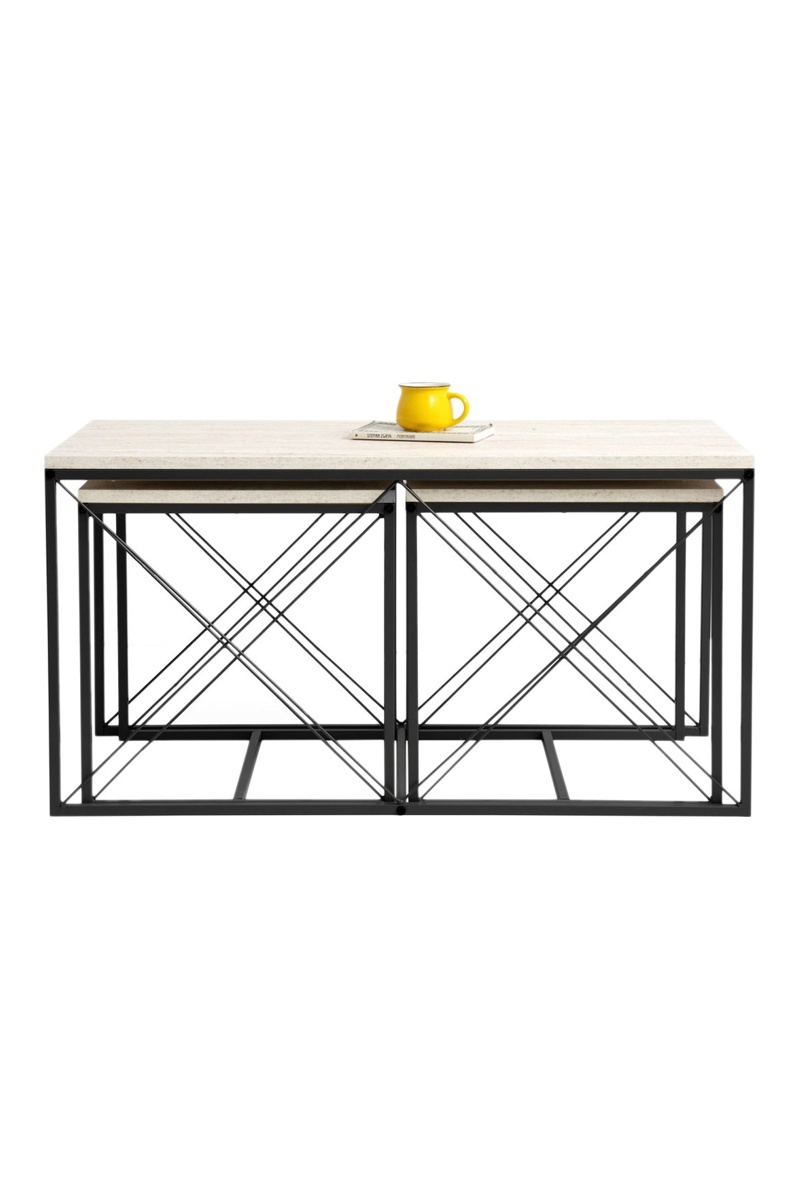 3 tables basses Defne - Ecru et noir