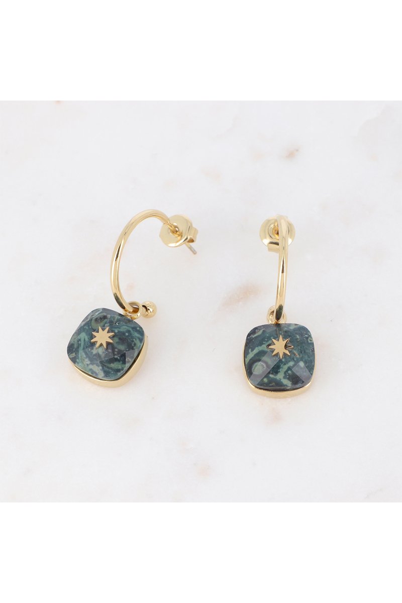 Boucles d'oreilles pendantes serties d'un jade africain.