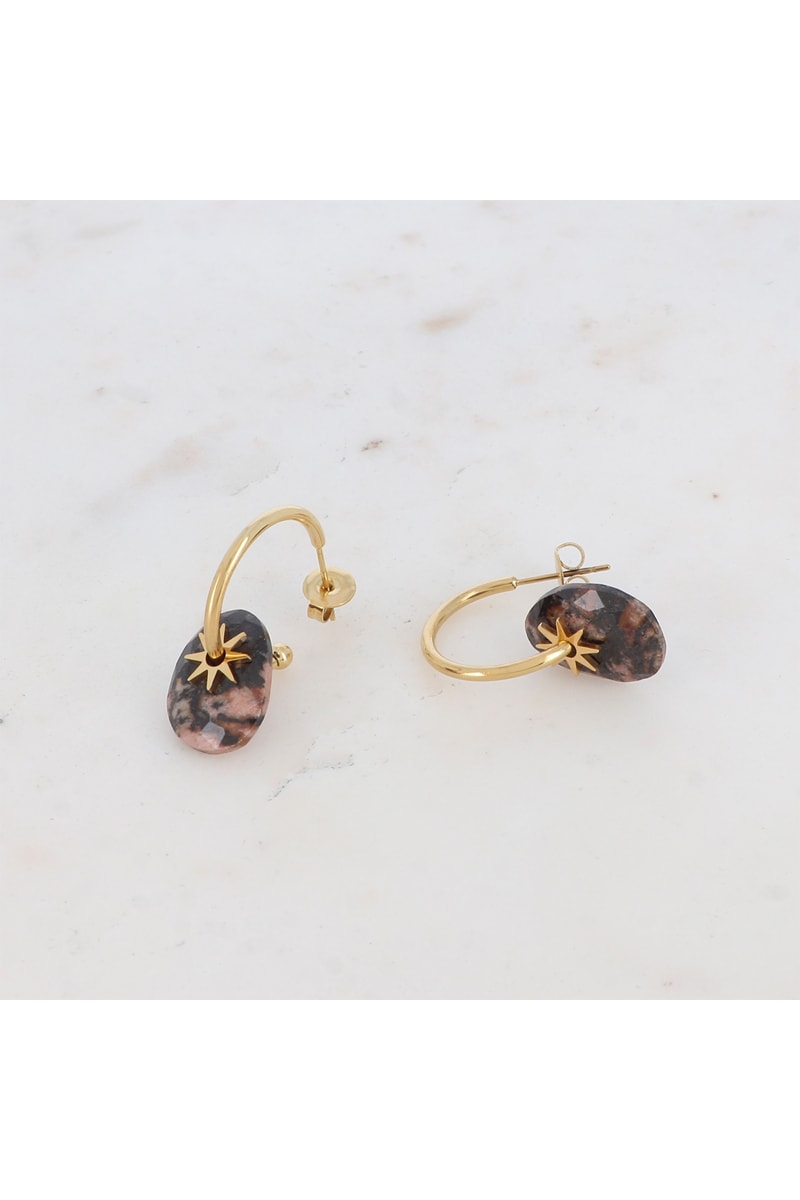 Créoles serties d’une rhodonite.