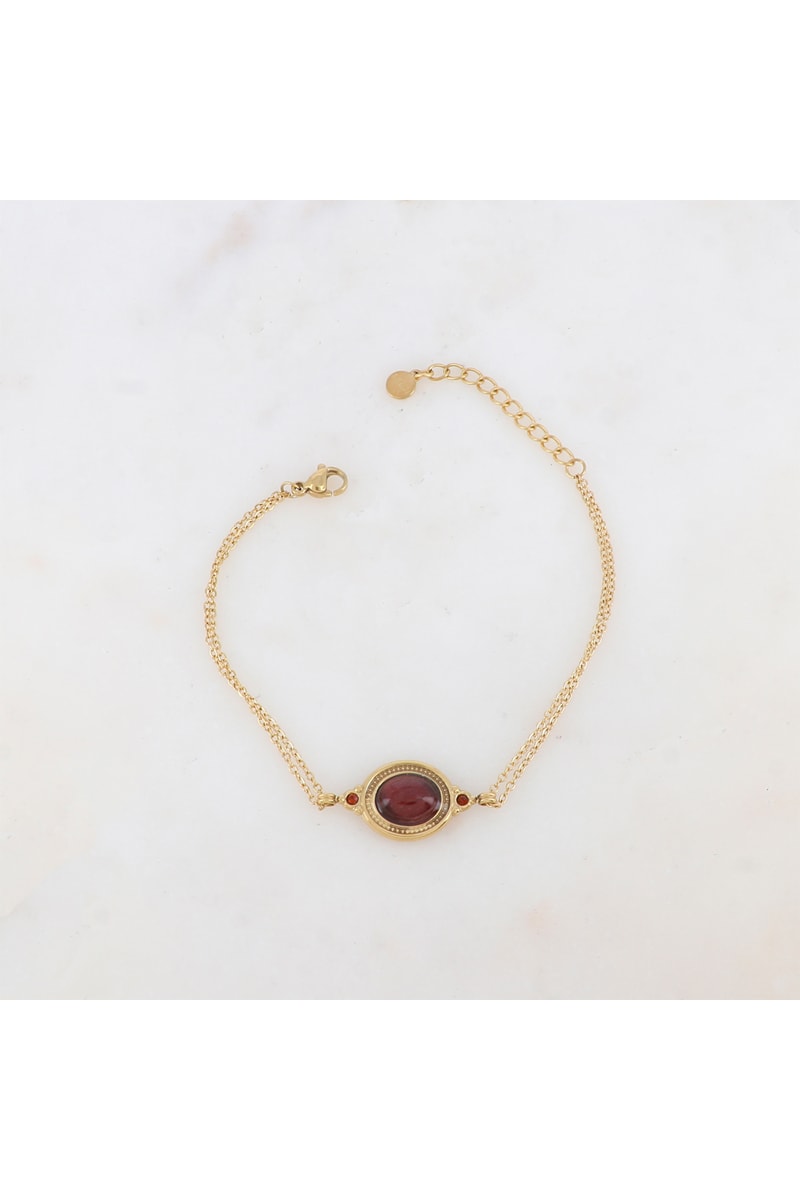 Gourmette sertie d’un œil-de-taureau et de cristaux.