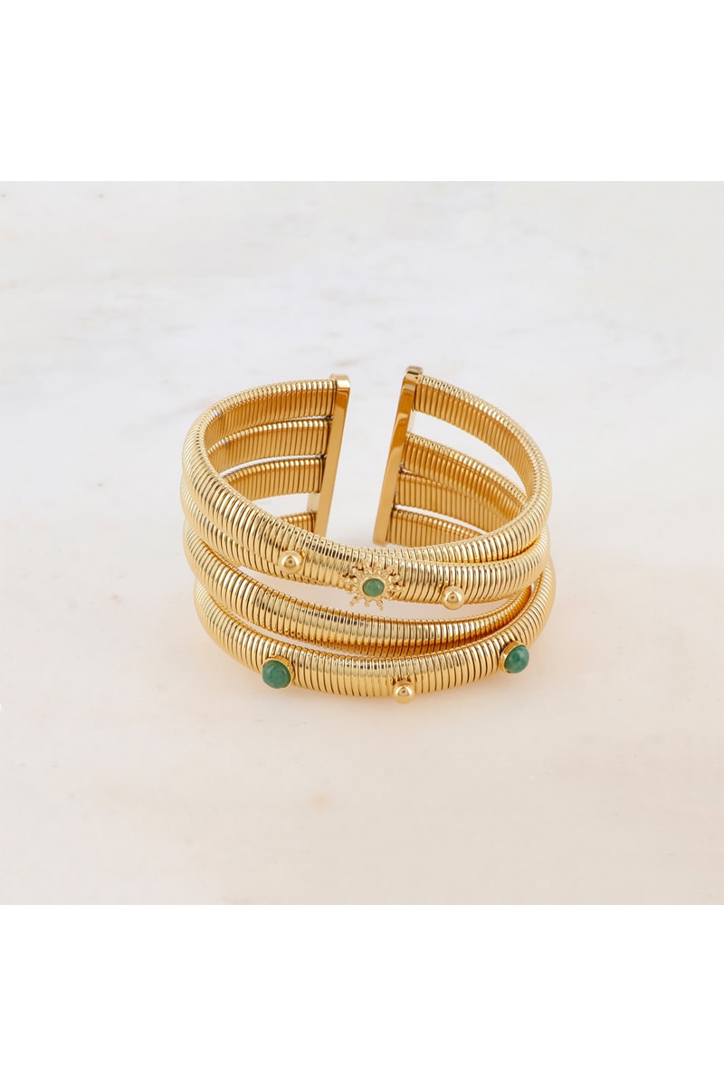 Manchette ouverte sertie de 3 agates.