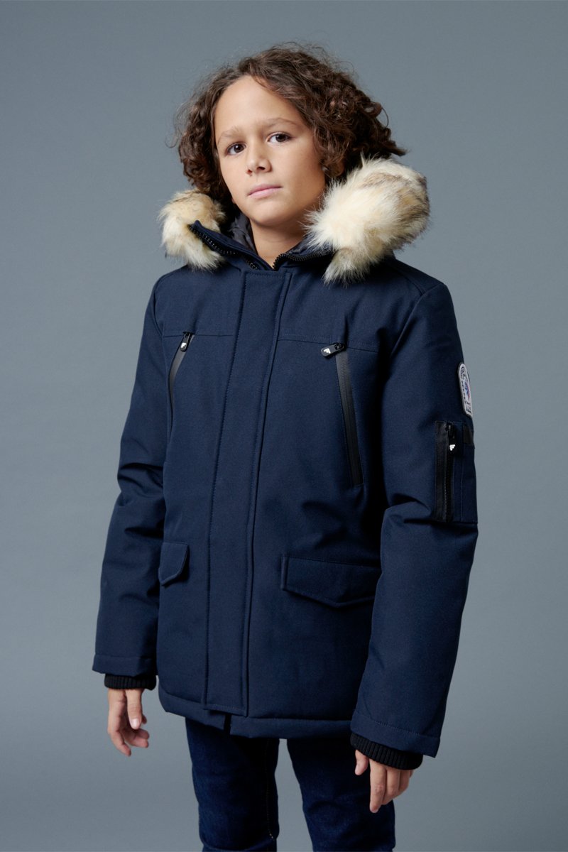 Parka à capuche.