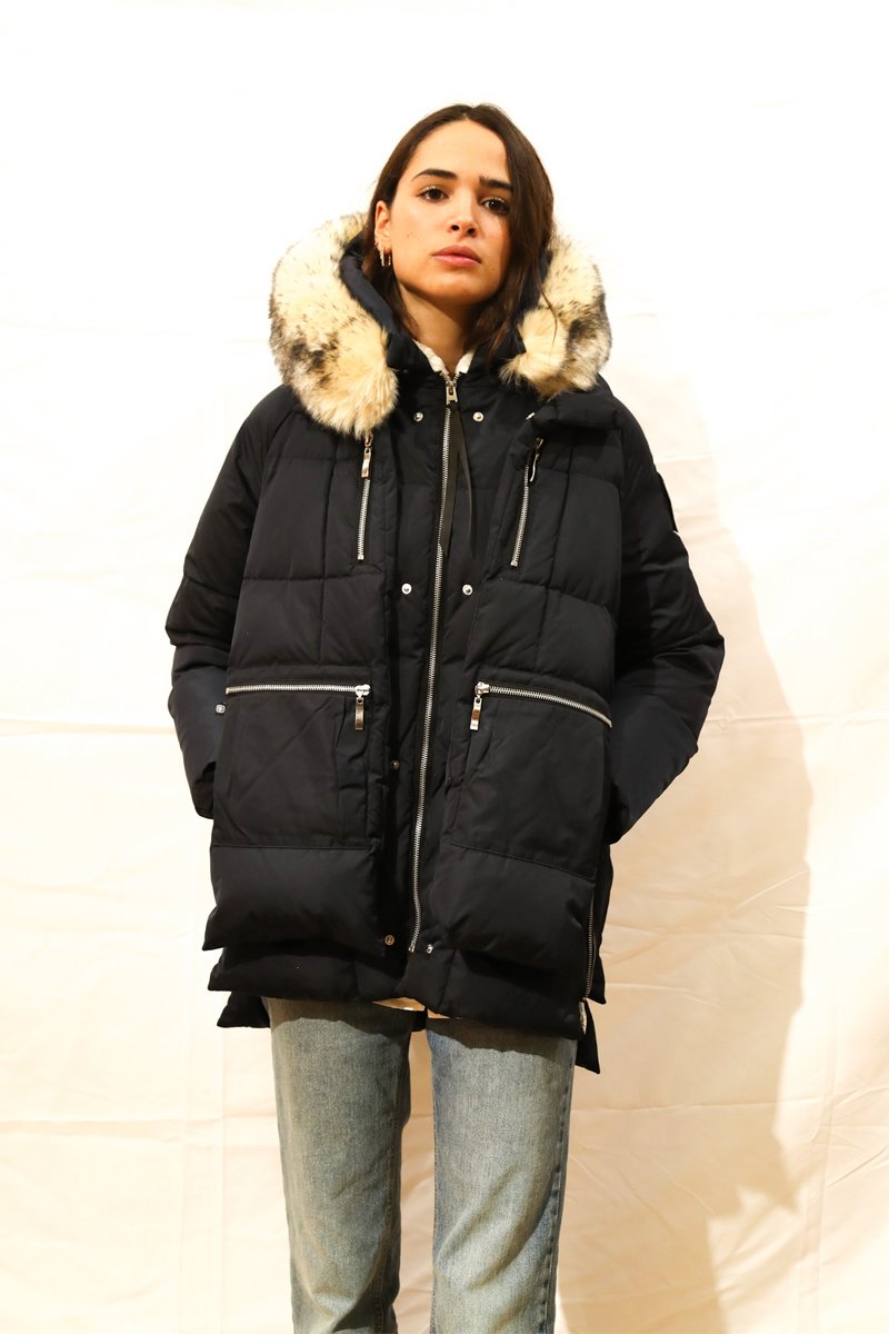 Capuche avec fourrure synthétique et amovible.