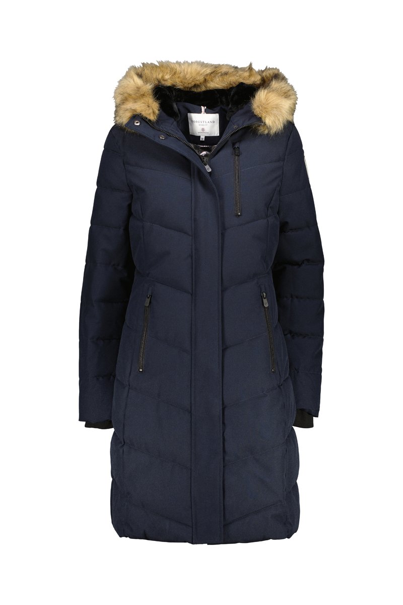 Doudoune matelassée longue à capuche Piau - Bleu marine