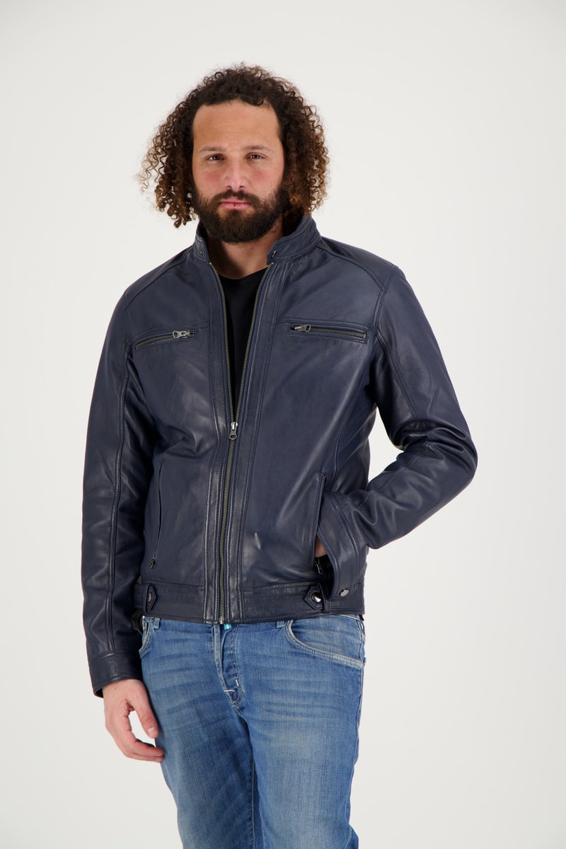 Veste en cuir d’agneau Dhoni - Bleu marine