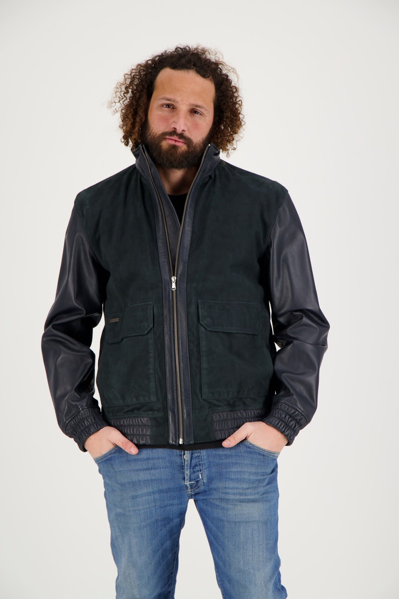 Veste en cuir de chèvre et cuir de chèvre nubuck.