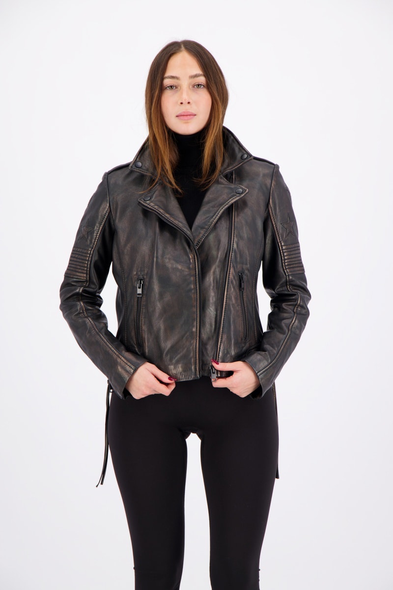 Veste en cuir de mouton Golden Vintage - Noir