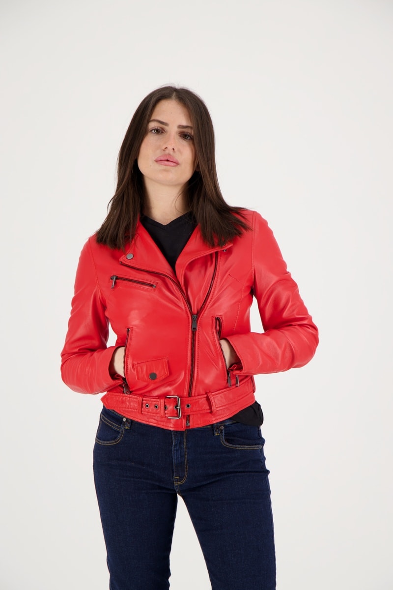 Veste en cuir d’agneau Orah - Rouge