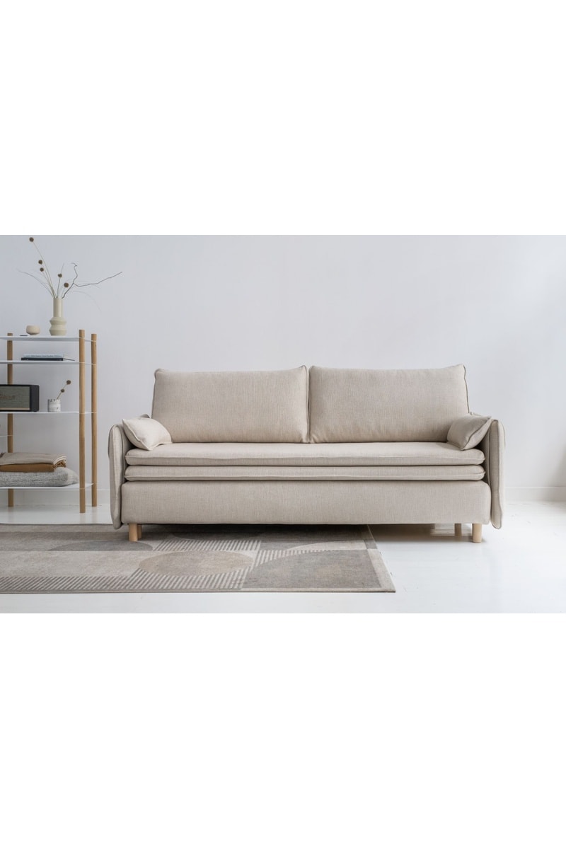 Canapé convertible Simon - Beige - 3 places - En polyamide, polyester et viscose antitache - Dimensions couchage 140 x 190 cm