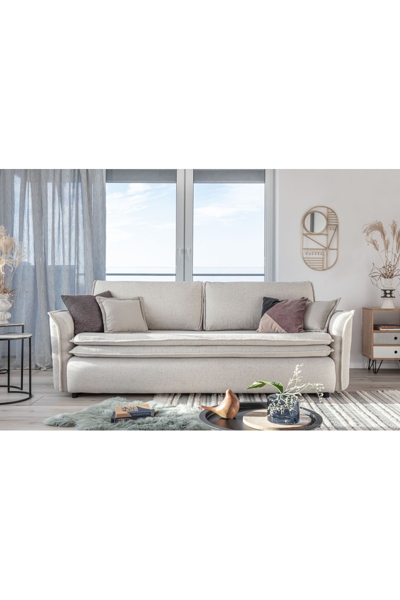 Canapé convertible Charming Charlie - Beige - 3 places - En polyester - Dimensions couchage 140 x 190 cm