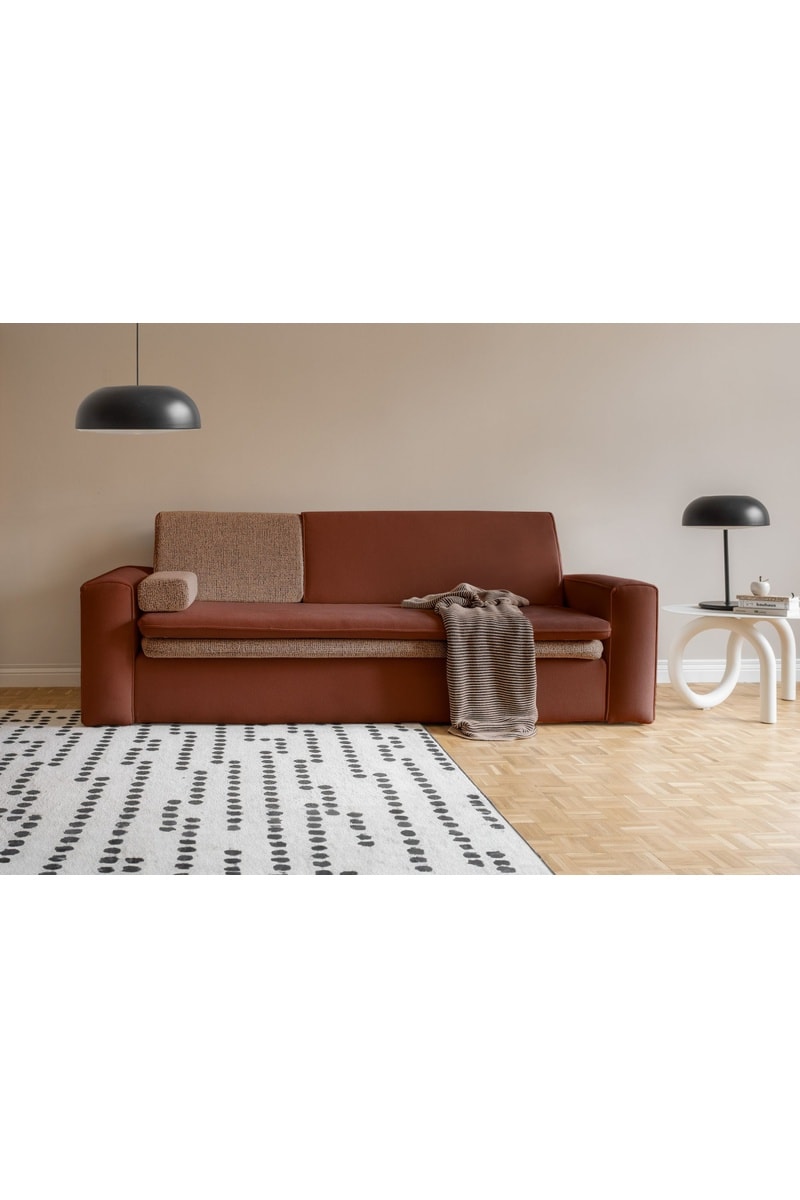 Canapé convertible Wilson - Rouge brique - 3 places - En polyester antitache - Dimensions couchage 140 x 190 cm