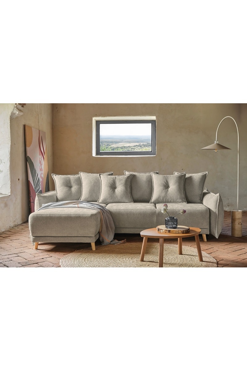Canapé d’angle convertible Lazy Lukka - Taupe - 4 places - Toucher velours - Dimensions couchage 130 x 210 cm