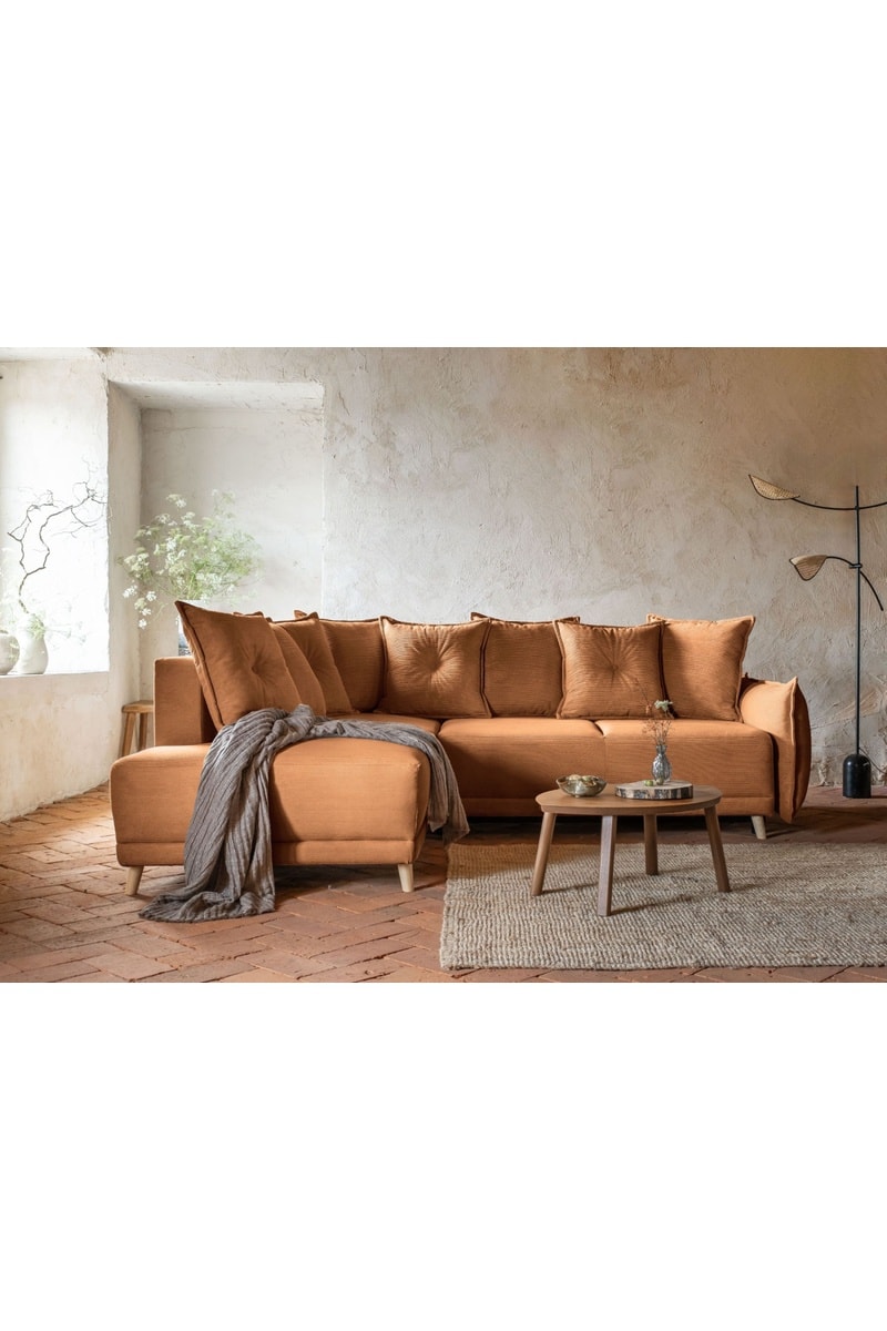 Canapé d’angle gauche convertible Lazy - Rouge brique - 6 places - En polyester - Dimensions couchage 140 x 210 cm