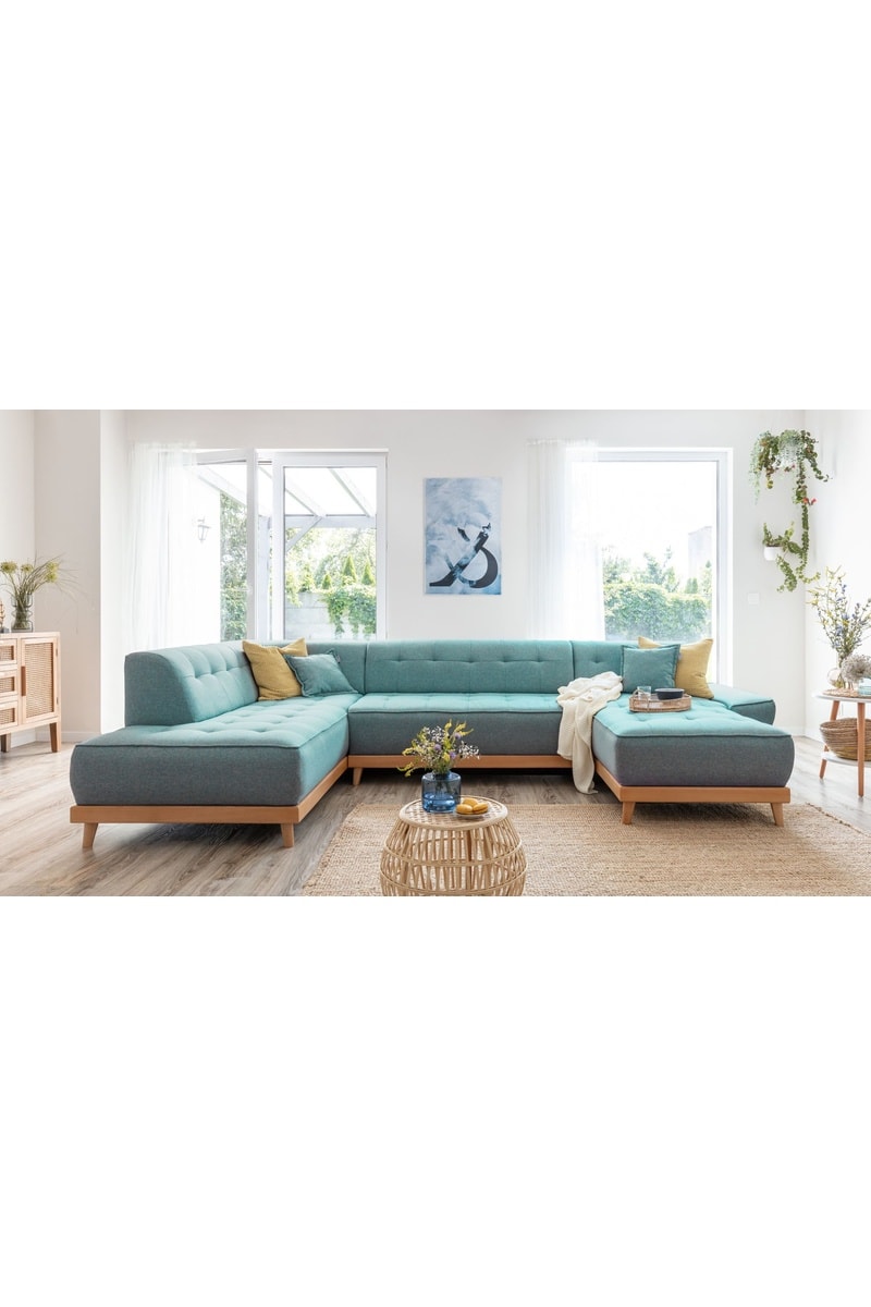 Canapé d’angle convertible Dazzing Daisy - Turquoise - 8 places - En polyester -Dimensions couchage 110 x 270 cm