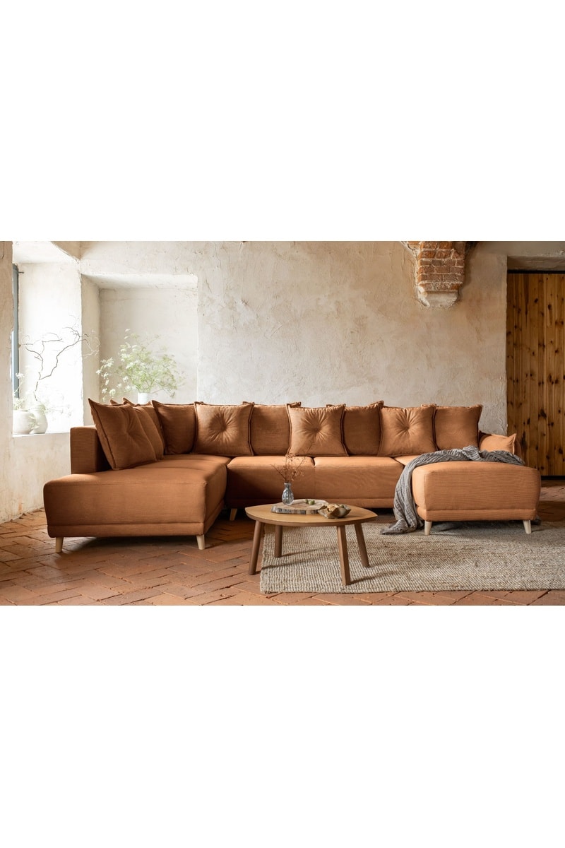 Canapé d’angle gauche panoramique convertible Lazy - Rouge brique - 8 places - En polyester - Dimensions couchage 130 x 280 cm