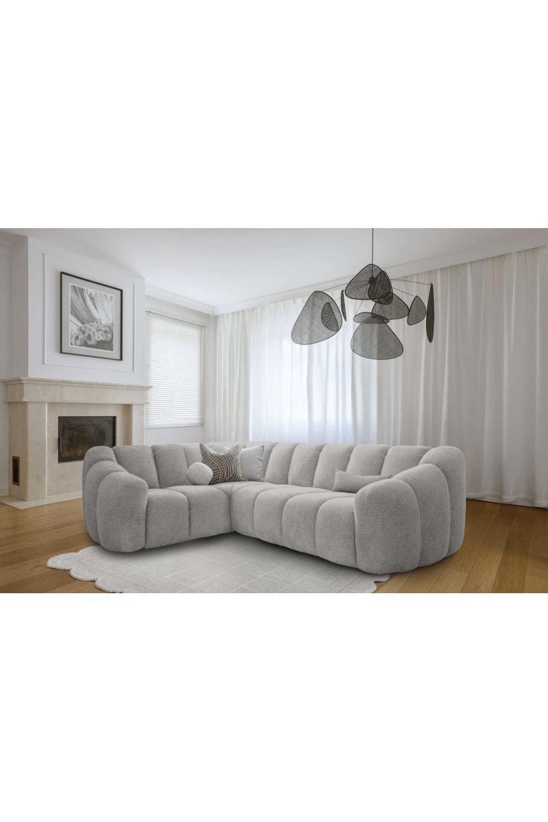 Canapé d’angle gauche modulaire Shell - Gris clair - 6 places - En polyester