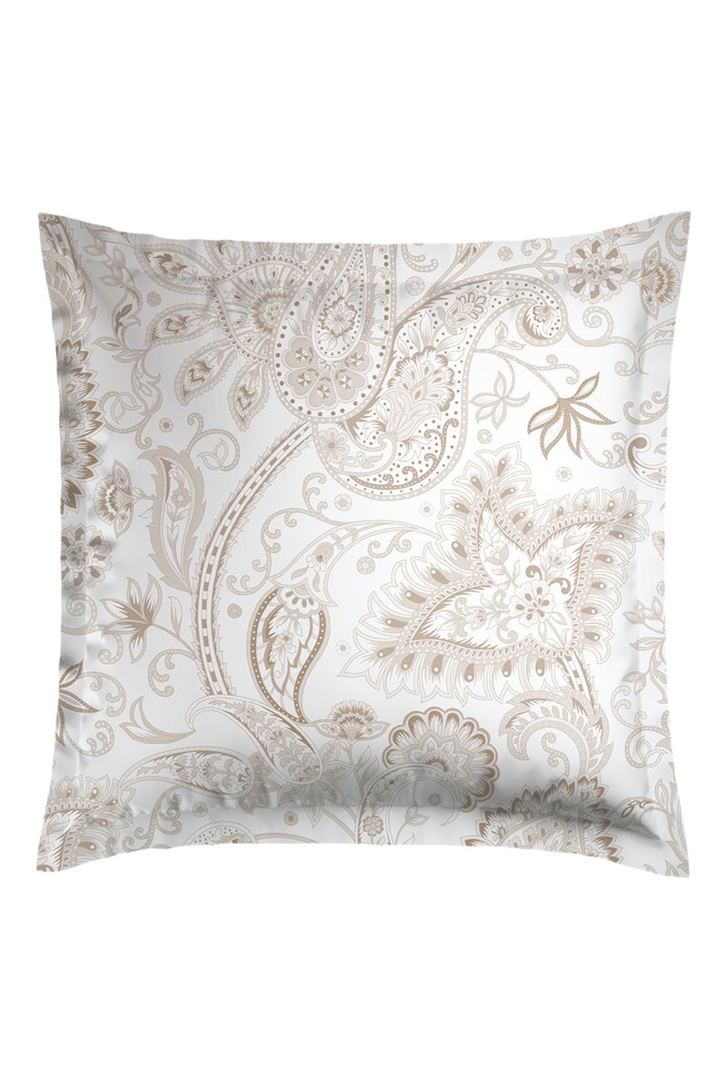 2 taies d'oreiller en satin de coton 80 fils/cm² Paisley - Blanc et taupe