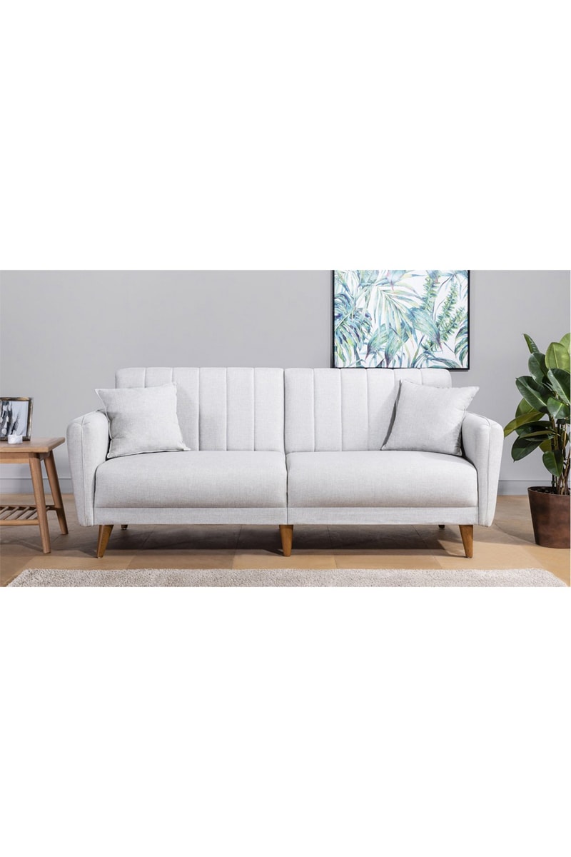 Canapé convertible - Crème - 3 places - Revêtement en lin