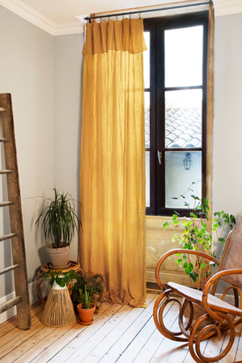 Rideau ajustable en coton Gaïa - Safran - 140 x 300 cm