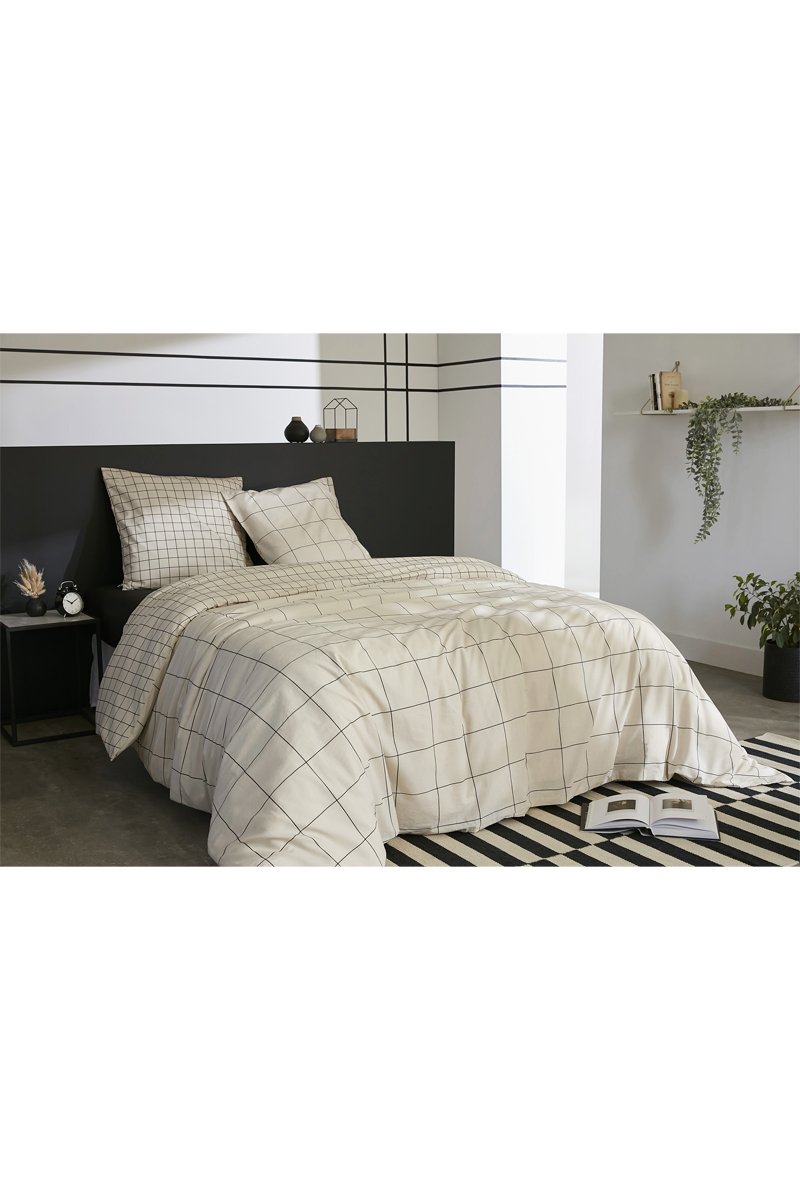 Parure de couette en coton Carrie Pampa - Ecru et noir