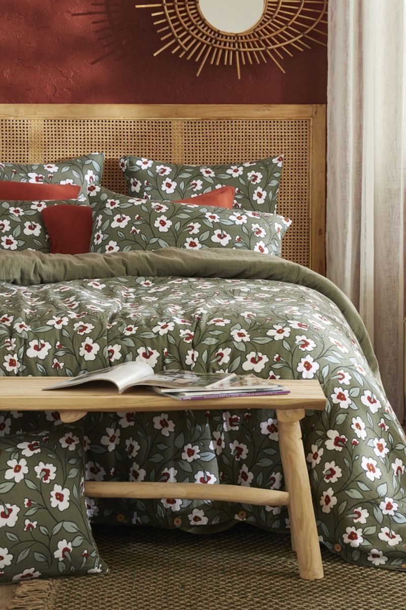 Housse de couette Flora - Kaki et blanc