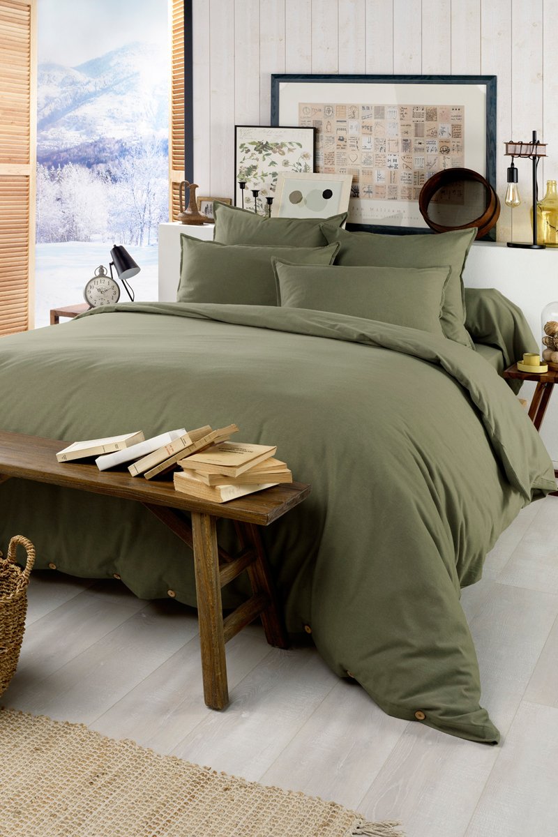 Toutes nos parures de lit pour 2 personnes comportent 2 taies d’oreiller : à partir de la dimension 200 x 200 cm pour les parures avec housse de couette, à partir de la dimension 240 x 300 cm pour les parures avec drap plat.