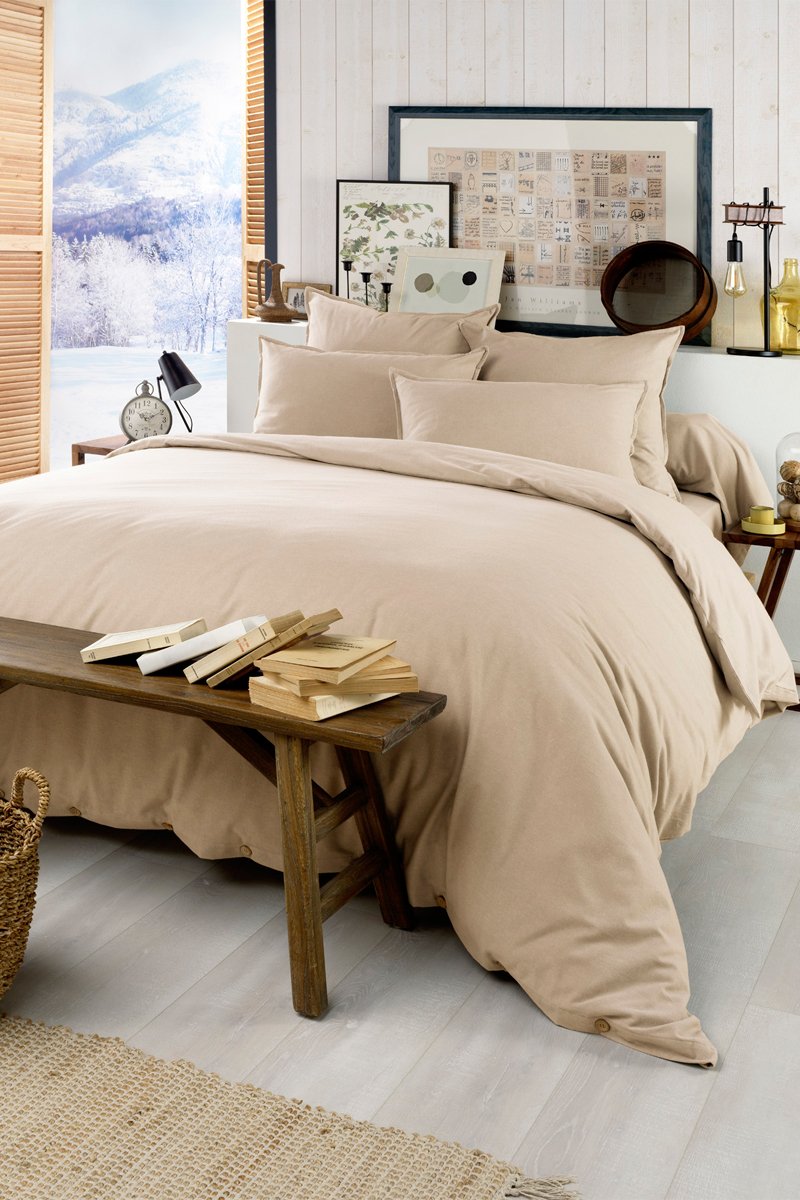 Housse de couette en flanelle de coton 170 g/m² Candice - Sable