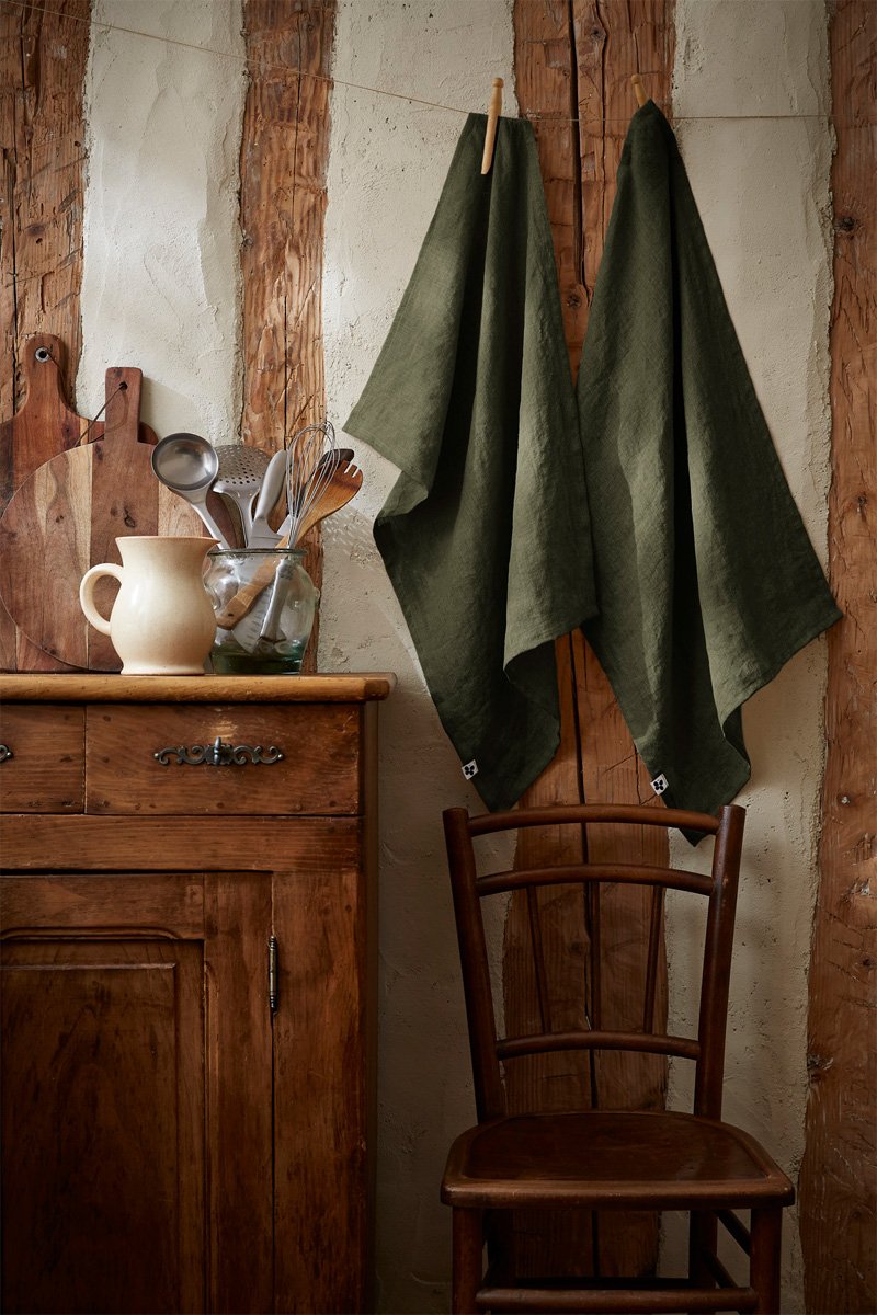2 torchons en lin lavé Soline - Kaki