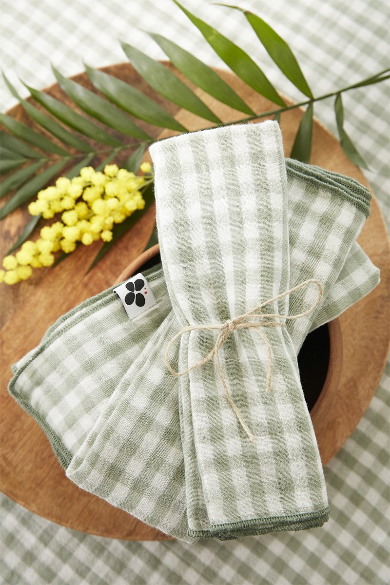 3 serviettes de table Vicikie - Vert et blanc