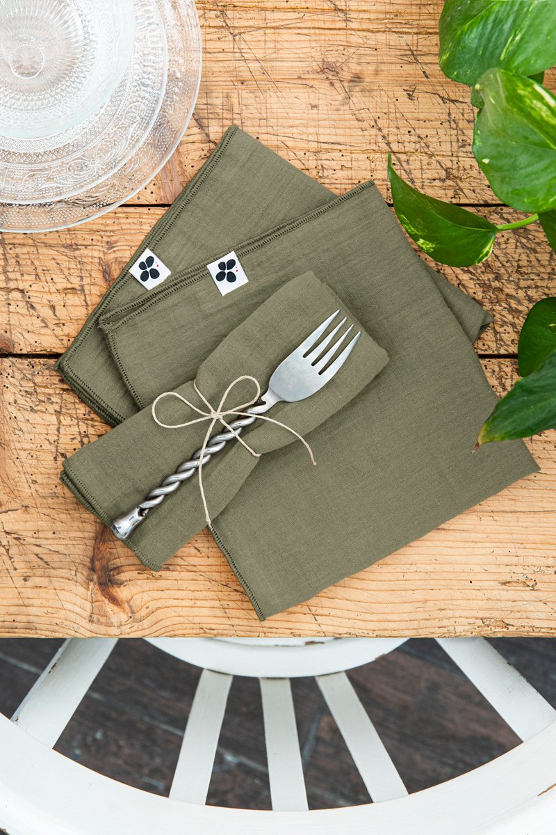 3 serviettes de table en gaze de coton.