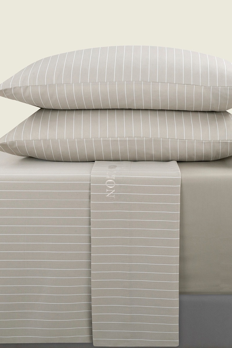 Parure de draps en satin de coton 80 fils/cm² Rayures Classiques - Taupe
