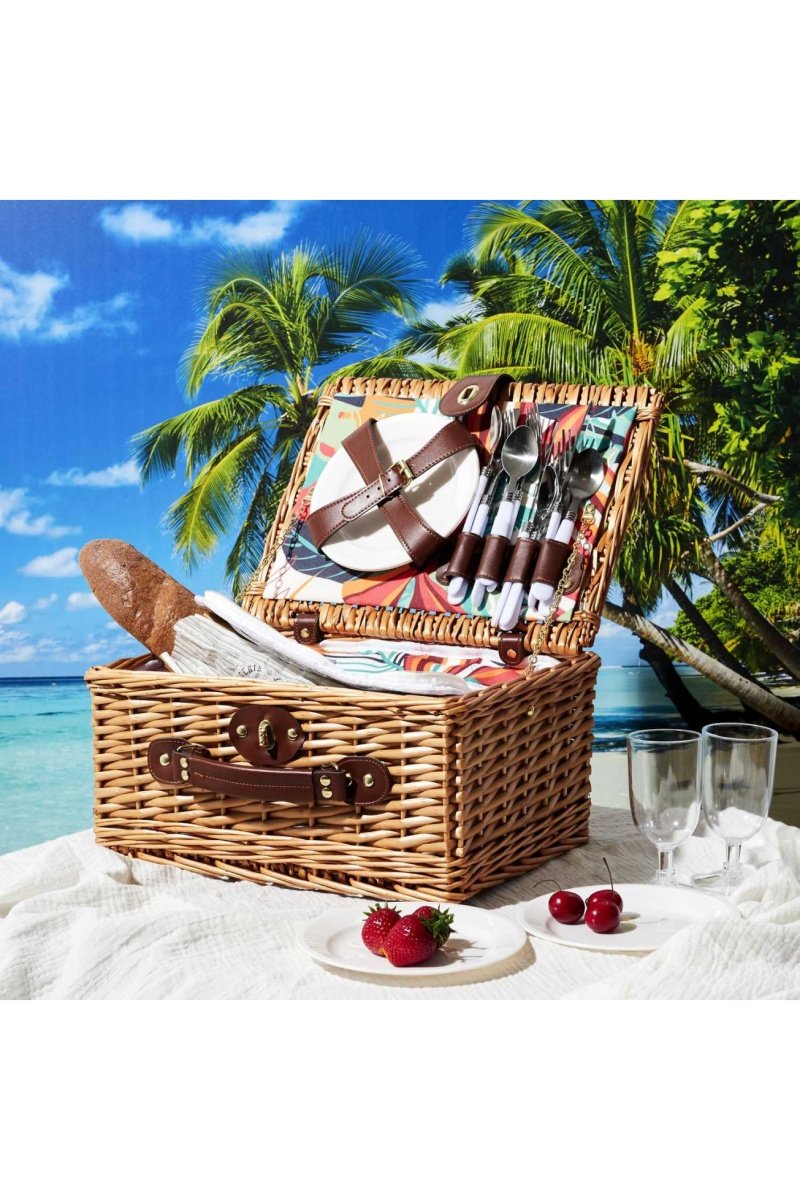 Panier pique-nique isotherme avec vaisselle - 4 personnes - Modèle aléatoire